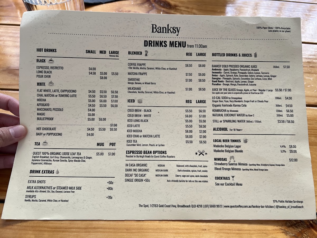 Welcome to Banksy Bar & Kitchen, a delightful cafe nestled in the heart of Broadbeach, Gold Coast. Renowned for its vibrant atmosphere and efficient service, this culinary gem offers a menu that tantalizes the taste buds.